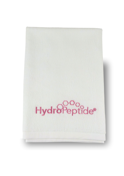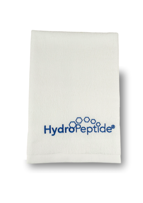 TOWEL HYDROPEPTIDE SMALL, WHITE WITH BLUE LOGO