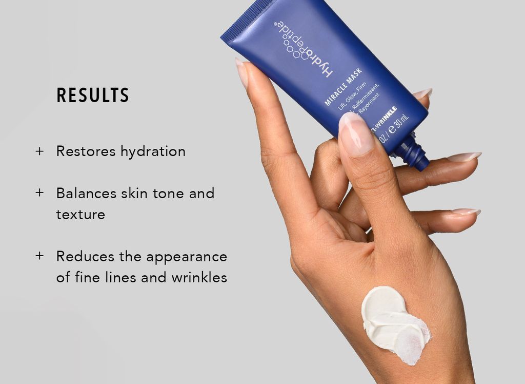 HydroPeptide Peptidhaltige Maske - Reinigt, liftet, erhellt und strafft. Die Maske lässt ihre Haut sofort jung erstrahlen. Der reinigende Ton und die Peptide extrahieren Verunreinigungen und verkleinern die Poren. Die Hyaluronsäure liftet, strafft und hydratisiert die Haut. Die Maske reduziert kleine Falten und Linien. Es löst schonend die abgestorbenen Hautzellen auf mit hilfe von Enzymen. Reinigt die Haut. Die Maske strafft die Haut und verbessert ihren Teint. Ernährt die Haut mit den enthaltenen Antioxidantien. Geeignet für alle Hauttypen, vor allem für Fettige und zu Akne neigender Haut.