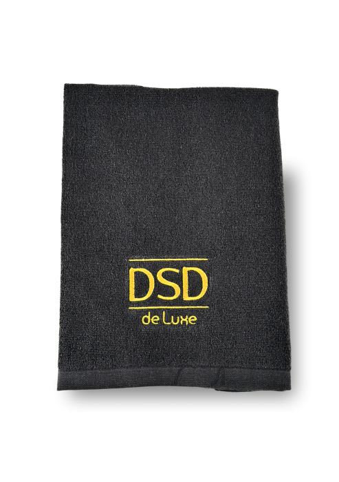 40x60 cm Kleines Baumwollhandtuch mit DSD-Logo, schwarz mit goldener Stickerei