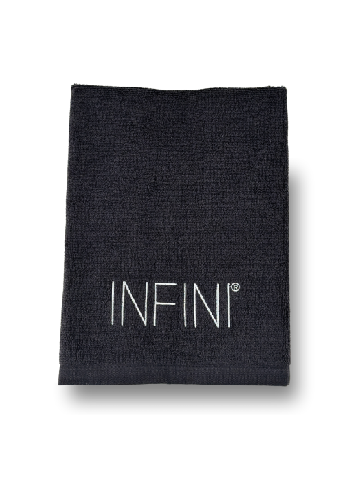 TOWEL INFINI SMALL, BLACK WITH WHITE LOGO