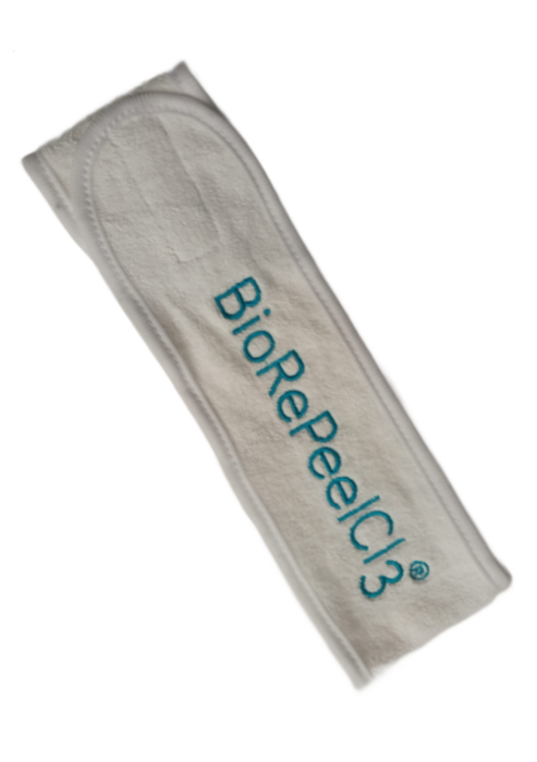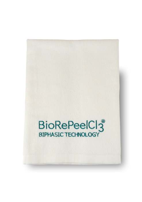 TOWEL BIOREPEEL SMALL, WHITE WITH BLUE-TO-GREEN LOGO