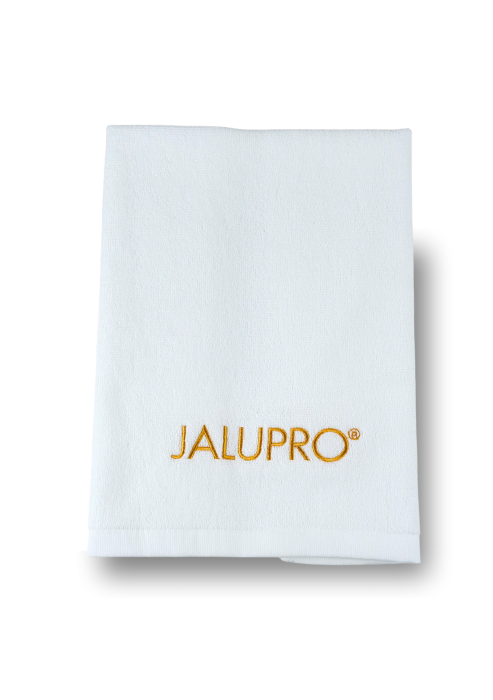 40x60 cm Kleines Baumwollhandtuch mit Jalupro-Logo, weiß mit goldener Stickerei